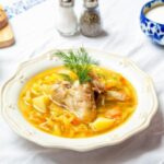 Это блюдо прекрасно сочетается со свежими овощами и лёгким соусом из сметаны с зеленью.